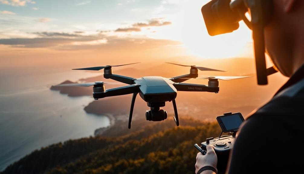 To master epic aerial pans, you'll need to grasp fundamental techniques and invest in quality equipment. Start by understanding the basics of smooth camera rotation during flight and consistent speed control. Choose a drone with advanced stabilization and 4K video capabilities. Pre-flight planning is essential; scout locations, check weather conditions, and plan your flight path. Practice various speeds and altitudes to create dynamic shots, and don't forget to take into account lighting for ideal results. Post-processing can enhance your footage, but avoid common mistakes like overly fast panning. By honing these skills, you'll reveal the secrets to creating breathtaking aerial cinematography that mesmerizes viewers.