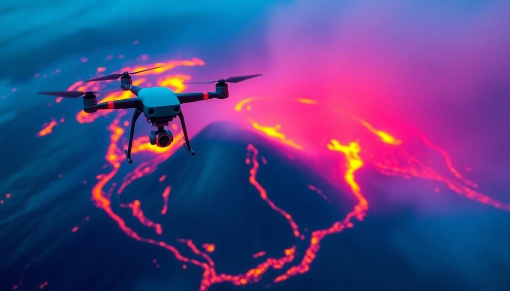 Thermal imaging cameras mounted on UAVs have revolutionized volcanic monitoring. You'll find these devices can detect heat signatures from lava flows, fumaroles, and other volcanic features, providing vital data on eruption patterns and potential hazards.